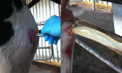 Màn nặn mủ ở chân bò khiến nhiều người phát hoảng