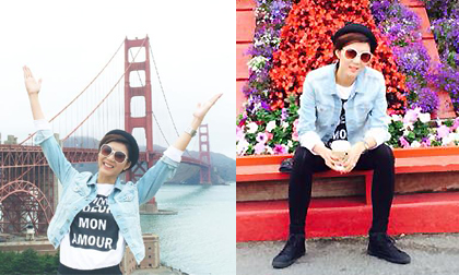 Ngọc Quyên hào hứng khám phá nước Mỹ và thích thú tạo dáng trên Cầu Cổng Vàng