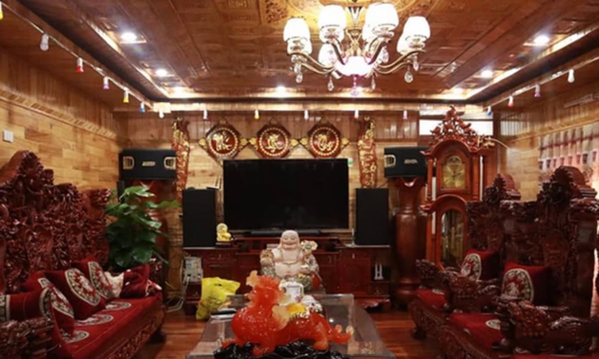 Ngôi nhà 'toát mùi tiền' vì được bao phủ bởi loại gỗ quý hiếm, riêng bộ bàn ghế đã có giá 800 triệu đồng