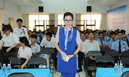 Hoa hậu Quý bà 2013 Bùi Thị Hà khoe vẻ đẹp rạng rỡ trên cương vị lãnh đạo cùng các nhiên viên trong một sự...