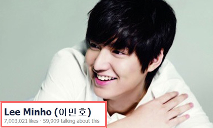 (Ngoisao.vn) - Anh chàng điển trai Lee Min Ho đã đứng đầu trang mạng cộng đồng facebook với lượng fans khủng.