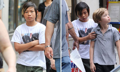 Con trai nuôi gốc Việt Pax Thiên của Angelina Jolie không nở một nụ cười nào trước ống kính máy ảnh.