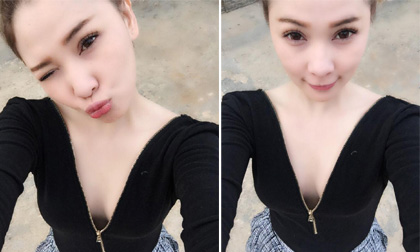 Quỳnh Thư gợi cảm với áo xẻ sâu vòng một