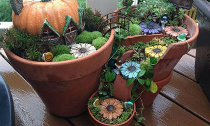 Tạo khu vườn tí hon đẹp đến ngỡ ngàng từ chậu hoa vỡ