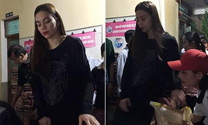 Không nghỉ ngơi, hơn 8 giờ tối Hồ Ngọc Hà vẫn đang đi phát quà từ thiện