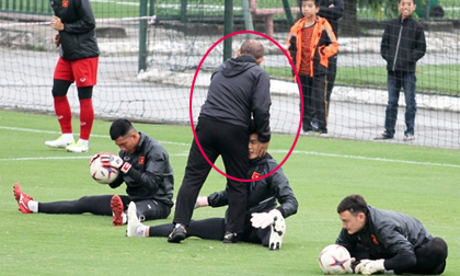Ngồi dự bị, nhưng Bùi Tiến Dũng vẫn chăm chỉ luyện tập và được thầy Park cưng nựng thế này
