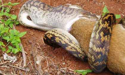 Cận cảnh trăn nuốt chửng con kangaroo