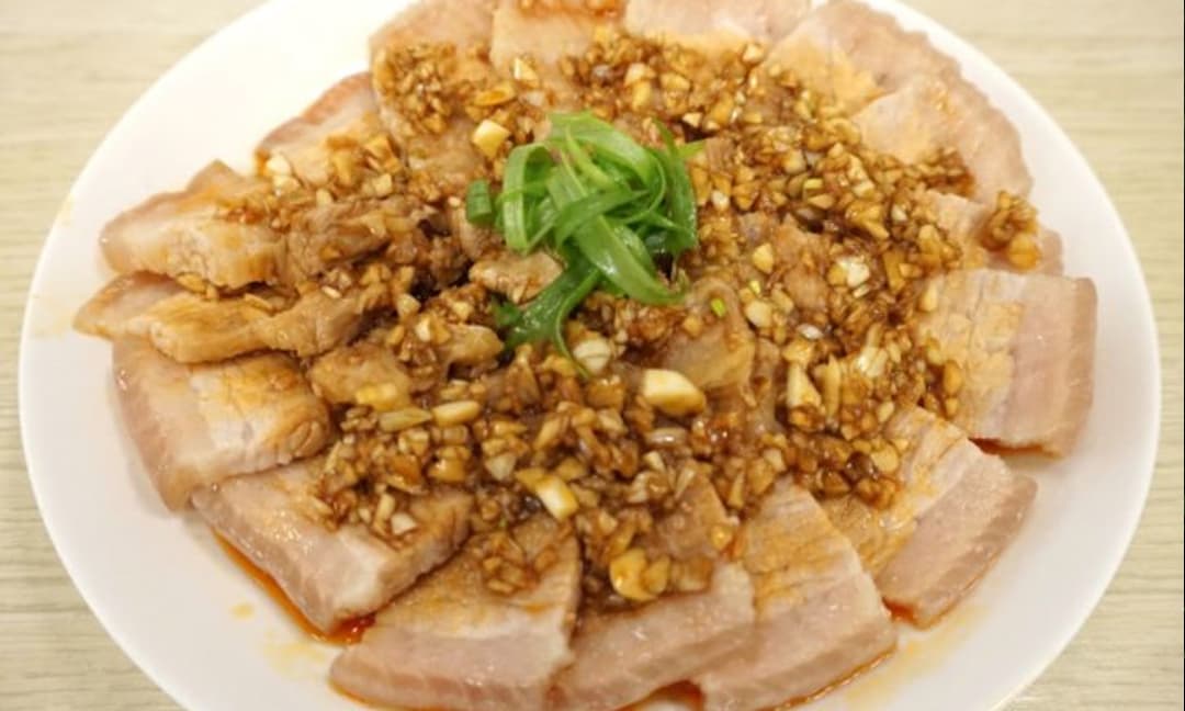 Món thịt ba chỉ luộc rưới nước sốt tỏi nổi tiếng ngon và đẹp mắt, cách làm lại rất đơn giản