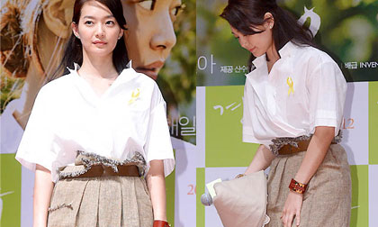 (Ngoisao.vn) - Đôi giày và tất bị cho là không hợp với trang phục của Shin Min Ah.