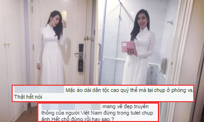Thủy Tiên bị 'ném đá' vì chụp ảnh áo dài trong nhà vệ sinh