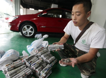 Vác bảy bao tải tiền xu đi mua xe hơi