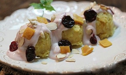 Nhìn bề ngoài món này không khác gì một món kem cực hấp dẫn nhưng thực ra nó lại là khoai lang phủ sữa chua...