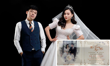 Hé lộ thiệp cưới của diễn viên Trung Ruồi và vợ là nghệ sĩ múa