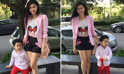 Mẹ con Trương Quỳnh Anh sành điệu trên phố