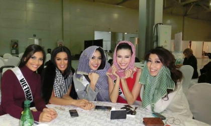 Trương Thị May tặng khăn rằn cho các người đẹp Hoàn vũ