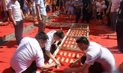 Xếp vàng thành lối đi gây chú ý trong ngày khai trương