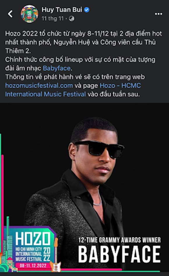 Mới đây, ngay khi nhạc sĩ Huy Tuấn hé lộ sự hiện diện của Babyface - Huyền thoại âm nhạc sở hữu 12 tượng vàng Grammy - tại HOZO 2022, hàng loạt “fan cứng” đã trầm trồ khen ngợi và đặt vé máy bay về TP.HCM ngay!